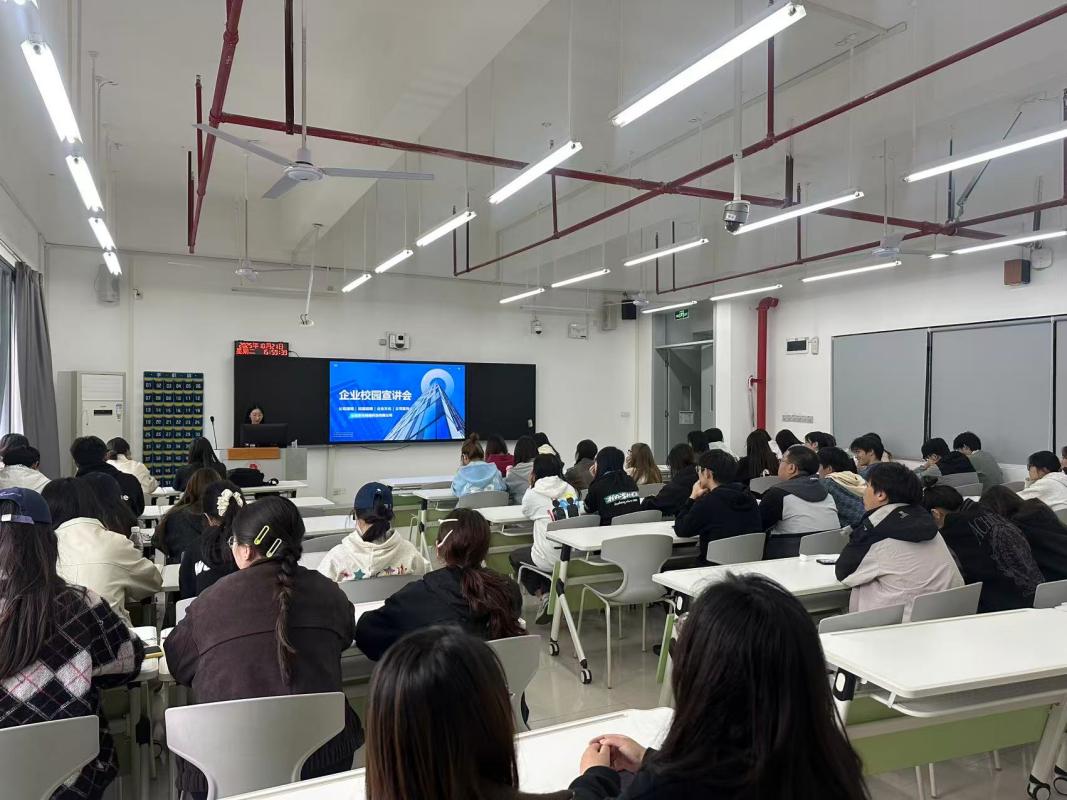 宣讲环节中,罗江彦总监结合自身企业发展历程、核心业务板块,详细解读了当前金融行业的发展现状与未来趋势,重点介绍了企业针对应届毕业生的招聘岗位、任职要求、薪酬福利及培养体系。