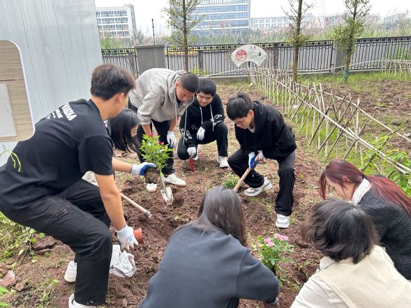 活动中,以党支部为单位分成四个小组,师生有序分工、共同行动,一起清理了杂草,播种了玫瑰、山茶、茉莉、萝卜、小白菜等花苗和种子,圆满完成了本次的劳动任务。