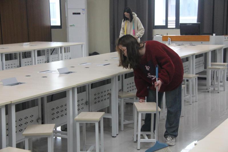 每周一、周三、周五中午十二点,同学们在各班级负责的实训室集合就绪,迅速投入到热火朝天的劳动实践中:清洁地面、擦拭玻璃、整理桌面,每一项工作都井然有序,确保大扫除高质量、高效率完成。