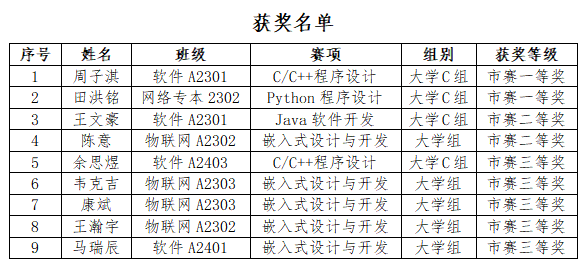 近日,第十六届“蓝桥杯”全国软件和信息技术专业人才大赛软件类省赛获奖名单及奖状公布。我院学子表现优异,共有9名学生获奖,其中一等奖2人、二等奖2人、三等奖5人。