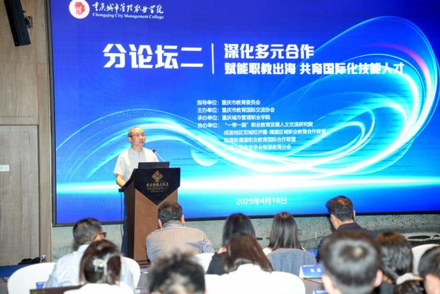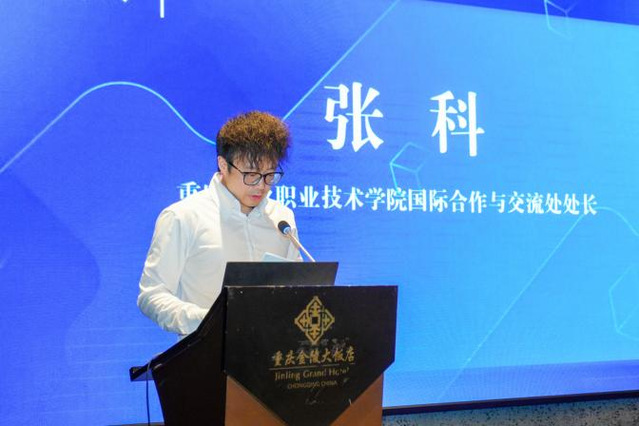 邓明国在致辞中简要介绍了学校概况及国际化办学成果,指出希望能以论坛为纽带,搭建起多元合作平台,汇聚“抱团出海”合力,为职业教育高水平开放注入新动能。学校将以此为契机,持续夯实国际化办学根基,精心打造高质量国际合作项目,着力推动更多特色优势职业教育资源出海,为重庆加快打造内陆地区教育开放合作窗口、建设新时代教育强市贡献力量。