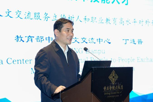 丁连普首先做了主旨报告,系统传达了国家对中外人文交流工作的政策,分析了做好新时代中外人文交流工作的要求、意义,以及在人文交流理念下国际化技术技能型人才培养的方法和思路。