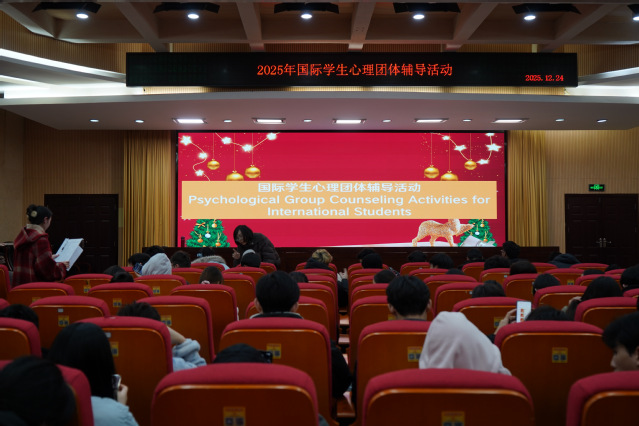 12月24日晚,国际合作与交流中心联合通识教育学院大学生心理健康与职场安全教研室举办的国际学生心理团体辅导活动在行政楼103会议室举行。来自老挝、孟加拉、越南等国家的83名国际学生参加心理辅导活动。