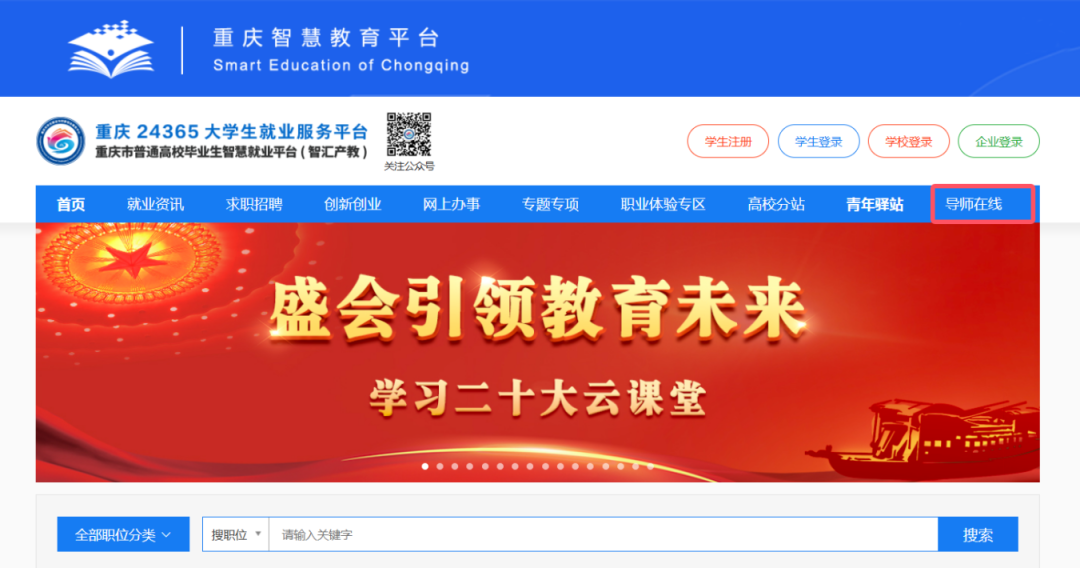 进入“重庆24365大学生就业服务平台”,找到 “导师在线” 服务入口。