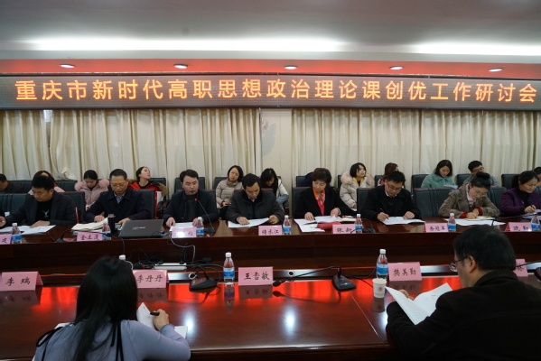 为深入学习贯彻全国学校思想政治理论课教师座谈会的精神,贯彻落实中办国办《关于深化新时代学校思想政治理论课改革创新的若干意见》和教育部党组《“新时代高校思想政治理论课创优行动”工作方案》,11月29日,我校主办的重庆市新时代高职思想政治理论课创优工作研讨会在办公楼第二会议室召开。我校党委副书记张新,中共重庆市委教育工委、重庆市教委宣教处余冠军同志出席,来自全市19所高职院校的马克思主义学院、思想政治理论课教学科研机构负责人和骨干教师60余人参加会议,共同研讨高职思想政治理论课的改革创新。研讨会由我校党委委员、党委宣传网工部部长、马克思主义学院院长喻永均主持。