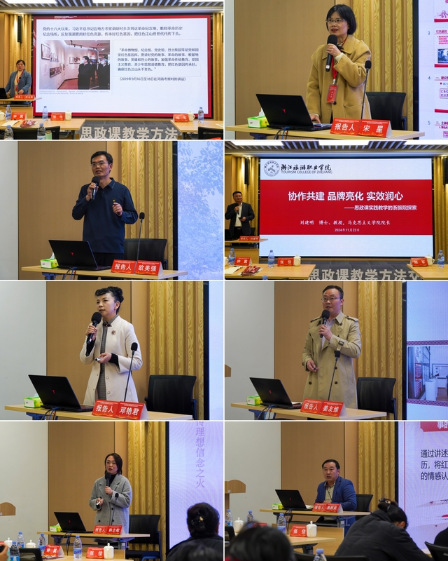 本次研讨会的经验交流共分为两个阶段,由乐山职业技术学院马克思主义学院副院长徐志红和我校马克思主义学院副院长张媛艺共同主持。在经验交流阶段,四川交通职业技术学院马克思主义学院副院长李冰梅,重庆建筑工程职业学院党委委员、党委宣传部部长、马克思主义学院院长宋星,四川财经职业学院红色财经文化研究中心副主任欧美强,浙江旅游职业学院马克思主义学院院长刘建明,湖南商务职业技术学院马克思主义学院院长邓艳君,四川工程职业技术大学马克思主义学院书记韩志敏,四川职业技术学院马克思主义学院院长姜友维,南京信息职业技术学院马克思主义学院副教授熊群荣分别以《弘扬“两路”精神 用好红色资源“活教材”》《用好用活红色校史打造“三转化四融入”红岩思政育人品牌》《“大思政课”视域下红色财经文化育人实践与思考》《协作共建 品牌亮化 实效润心——思政课实践教学的浙旅院探索》《湖湘红色文化校本课程建设的实践与思考》《高职院校“大思政课”实践教学协同育人体系建构探索》《实施“三全融合、三体贯通”育人工程 落实立德树人根本任务,培养时代新人》《“多元教学”让红色文化在思政课中“活”起来》为题作了精彩的经验分享。
