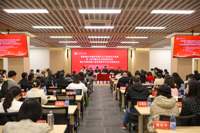 11月23日,成渝红色文化教育共同体第二届川渝红色教育论坛暨红岩精神融入思政课教学方法交流研讨会在我校继续教育学院敏学厅开幕。本次研讨会由中共重庆市委教育工委、重庆市教委指导,教育部高校思想政治工作创新发展中心(重庆城市管理职业学院)、全国高校思想政治理论课手拉手集体备课中心(西南大学-重庆)、重庆高校思想政治工作队伍培训研修基地暨高职高专院校思想政治工作创新发展中心、成渝地区双城经济圈红色文化教育共同体主办,我校承办。来自全国40余所高职院校的党委组织部、宣传部、学工部以及马克思主义学院负责人,思政课骨干教师、党务工作者、辅导员等近130人参加会议。