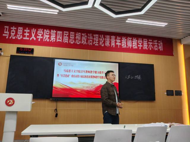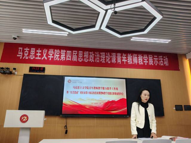 为深入学习贯彻习近平总书记关于思政课建设的重要论述,进一步提升青年教师教学能力,备战“红岩思政”重庆市第13届高校思政课教师教学技能竞赛,11月4日,马克思主义学院在智慧教室举办青年教师教学能力提升工作坊暨赛前指导会。学院领导班子成员、教研室主任、思政课骨干教师及参赛教师参会。