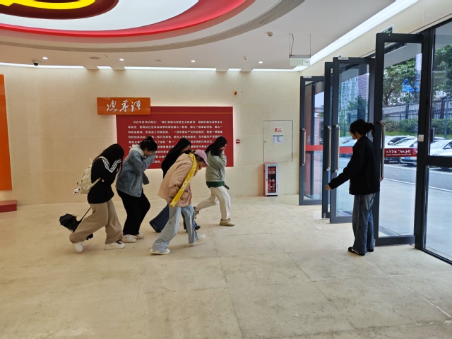 理论讲解结束后,全体人员依据演练方案的具体安排,前往“红色记忆”研学中心进行应急疏散实战演练。大家依照预设的疏散路线,弯腰低姿、捂住口鼻,迅速且有序地撤离到安全区域,整个过程衔接流畅、动作标准,顺利完成了演练任务。