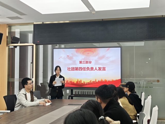 紧接着,前任社团负责人钟佳诺全面回顾了过去一年的各项事务,并对新任负责人表达了深切期望。新任负责人屈飞燕在就职演说中详细阐述了社团未来的发展规划和愿景。