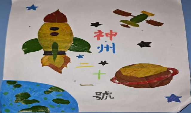 同学们分小组将收集的落叶精心筛选、修剪、拼贴。拼图聚焦祖国山河,以银杏叶铺展成万里长城的雄姿,尽显山河锦绣;以载人航天为主题,作为当今世界高新技术发展水平的集中体现和综合国力的重要标志。经过评选,最终11个作品突出重围,杨柳清、陈琳的作品《烽火征程,红旗永扬》和吉克阿呷、蔡婧的作品《秋景喻盛世》获一等奖,其余作品分获二等奖和三等奖。