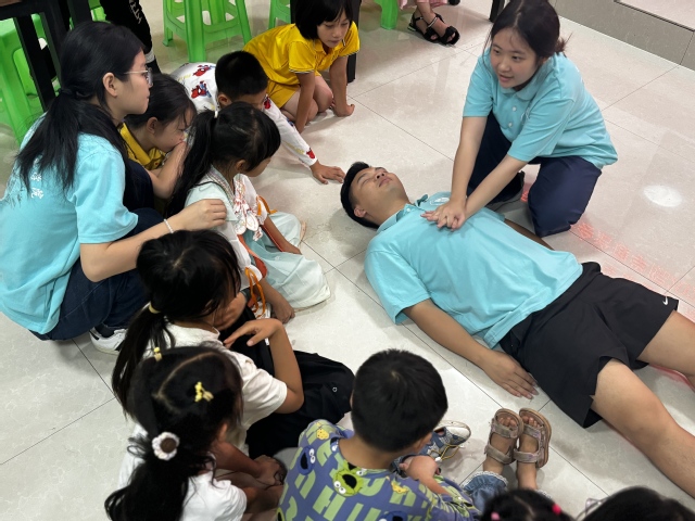 本次活动充分发挥了高校专业优势与社会实践效能。生命“童”行实践团成员们精心策划组织,在社区及周边区域开展了一场情景化安全技能培训。他们通过专业讲解、模拟演示与互动参与相结合的方式,系统传授了溺水自救与互救的正确方法,团队成员亲身模拟心脏骤停场景,从判断意识、环境评估,到精准定位按压点、示范标准按压姿势,完整流程清晰呈现,让孩子们零距离掌握这项至关重要的救命技能。针对暑期多雨易引发地质灾害的季节特点,团队还重点讲解了山体滑坡的预兆识别及科学避险逃生技巧,显著提升了青少年面对突发自然灾害的实战能力与自我保护意识。