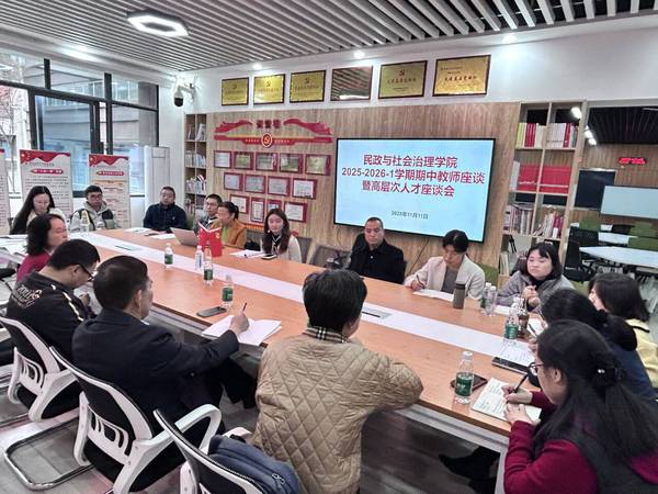11月11日,学院在致用楼B202会议室召开2025-2026-1学期期中教师座谈暨高层次人才座谈会。此次会议旨在加强教师间的交流与合作,提升教学质量,同时为高层次人才提供发展平台,推动学院各项事业迈向新台阶。会议由民政与社会治理学院院长周良才主持。