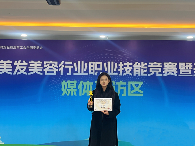 11月26-27日,由中国美发美容协会、中国就业培训技术指导中心、中国财贸轻纺烟草工会全国委员会联合主办的第六届全国美发美容行业职业技能竞赛在江苏省扬州市举行,来自全国12个赛区的620余名顶尖选手齐聚扬州,赛事规模与专业水平为历届最高。我院2023级婚庆服务与管理专业学生赵婉琳以优异成绩获得形象设计单项比赛“白纱新娘化妆整体造型”赛项(学生组)一等奖。