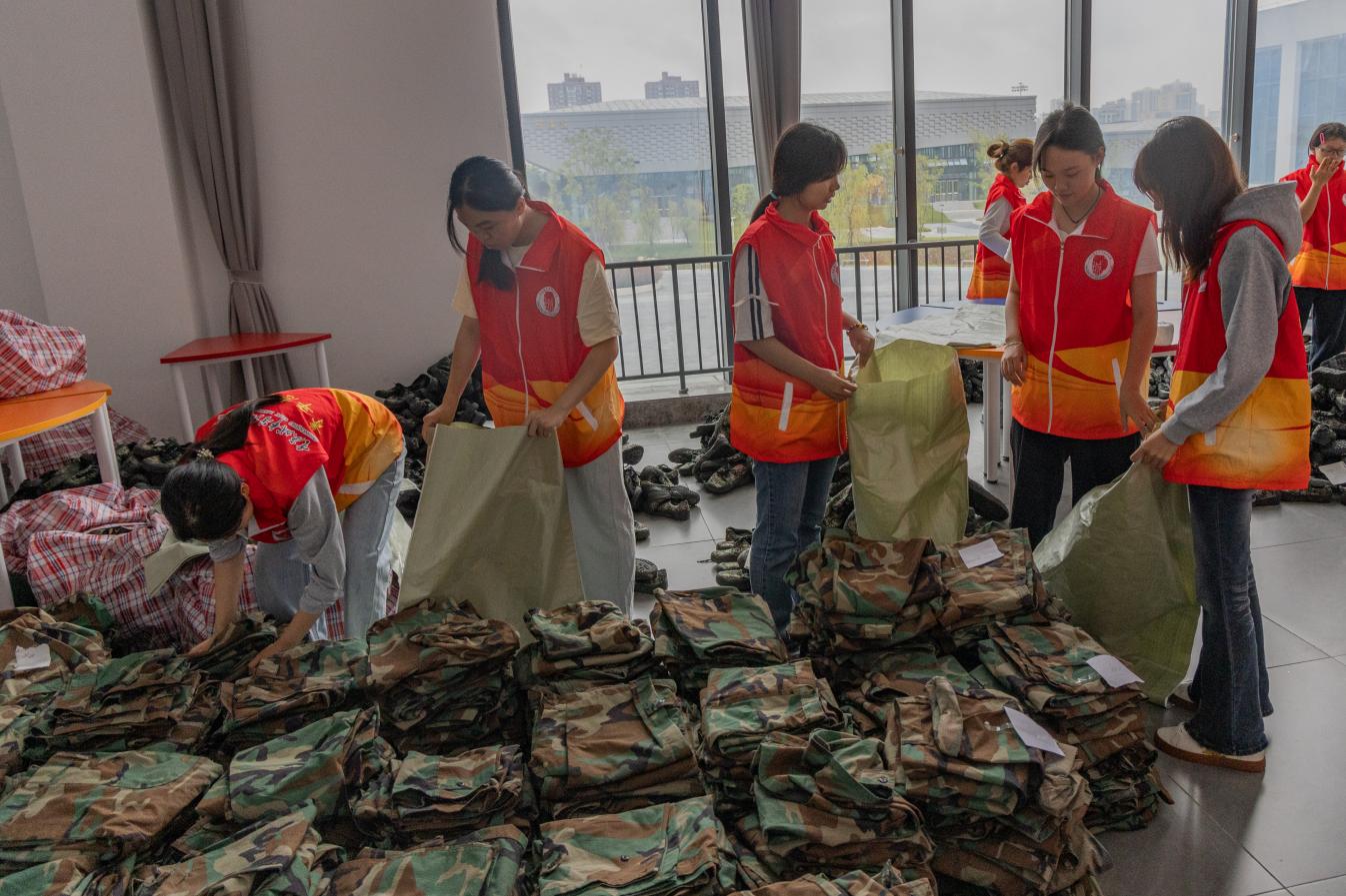 据了解,捐赠倡议以来,各二级学院组建分队,通过军训总结、线上通知等方式动员新生参与。捐赠物资经过“分类筛选-清洗-包装”标准化流程处理每件。仪式现场,师生志愿者代表将打包整齐的物资装车。