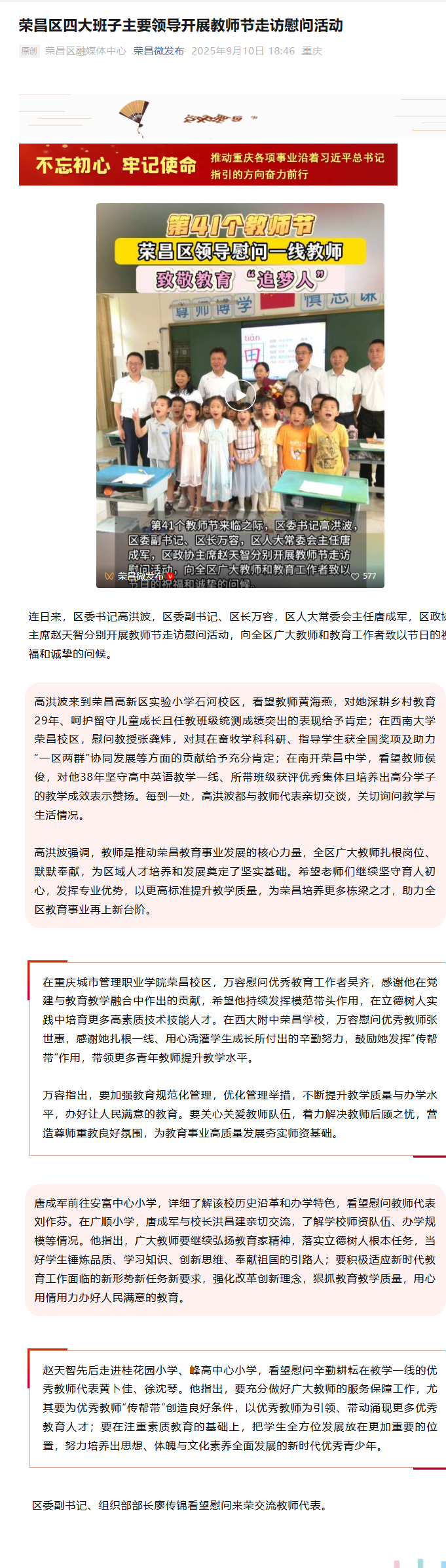 [荣昌区融媒体中心]荣昌区四大班子主要领导开展教师节走访慰问活动