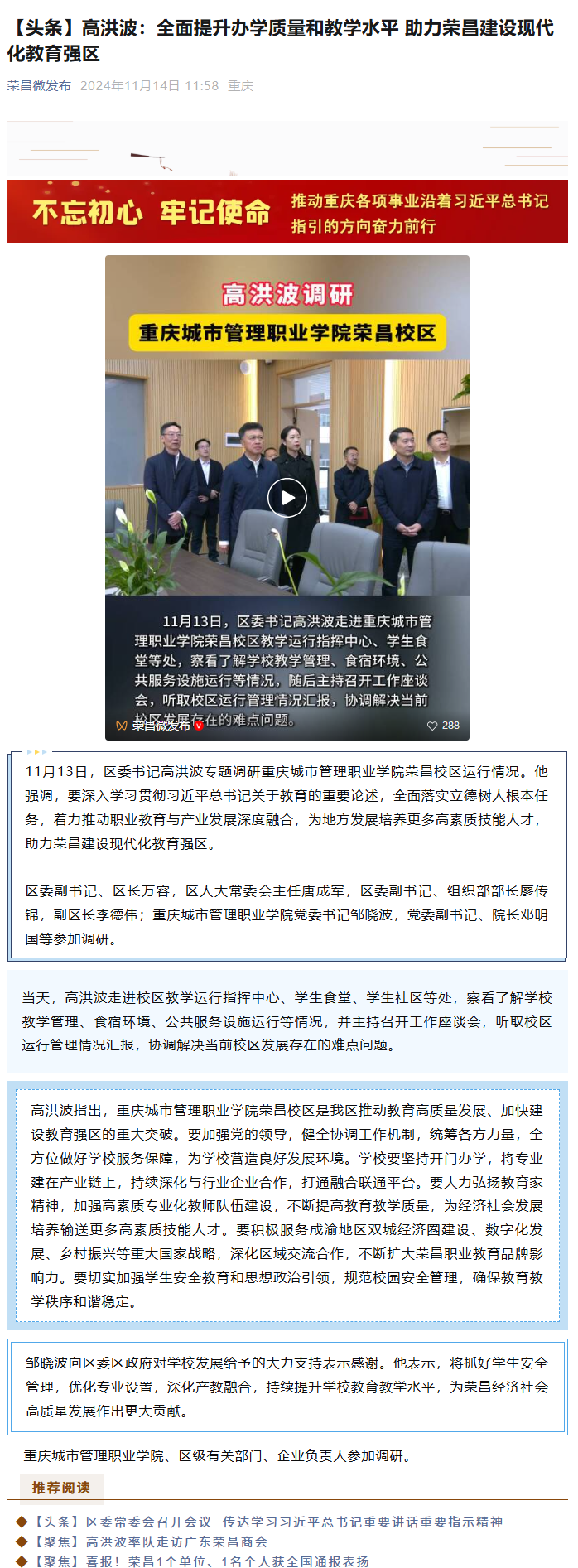 [荣昌手机台]【头条】高洪波:全面提升办学质量和教学水平 助力荣昌建设现代化教育强区