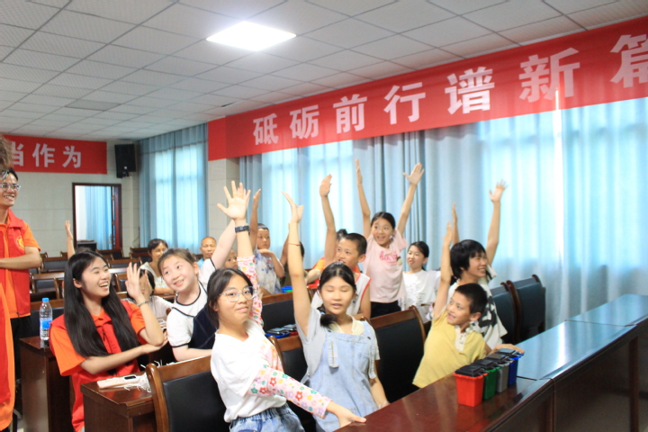 为增强互动体验,实践团成员们精心设计了沉浸式学习环节:通过“科研拼图”游戏,让孩子们分组合作还原“两弹一星”研制历史场景;在“小小科学家”角色扮演中,孩子们模拟科学家攻克技术难题的场景,切身感受科研工作者的智慧与担当。现场不时响起热烈的掌声与惊叹声,孩子们纷纷表示:“原来科学家们这么了不起,我也要像他们一样努力学习!”