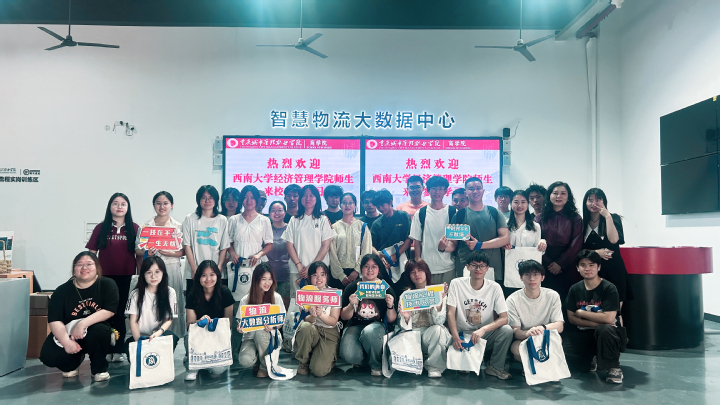 5月26日上午,西南大学经济管理学院农林经济管理专业33名本科生在邹宝玲教授带领下,赴我校智慧物流全流程生产性产教融合实训基地开展职业体验活动和实训,物流工程技术专业带头人岳一姬接待了实训团队。本次实训旨在推动职业教育与普通教育融通发展,探索职业教育服务乡村振兴的有效路径。