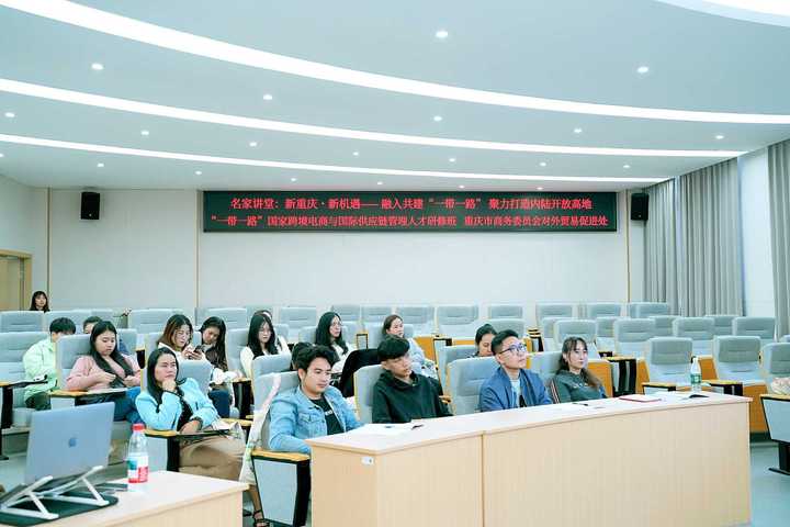 10月28日,“跨境电商丝路项目·名家讲堂”第二场顺利举行。重庆市商务委员会对外贸易促进处处长刘侃应邀作题为《新重庆·新机遇——融入共建“一带一路”,聚力打造内陆开放高地》的专题报告,为研修班学员系统解读重庆在对外开放方面的战略布局与发展实践。商学院副院长邱云、党总支副书记牟艳红、跨境电子商务专业教师及全体学员共同参与聆听讲座。