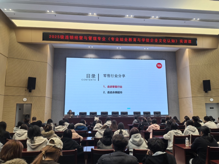 本次实训为期一周,纳入“始业教育”认知实习学分。活动以“企业文化进课堂、职业认知入培养”为主线,邀请永辉、麦当劳、首旅集团、山姆等多家知名连锁企业负责人走进校园,通过企业沙龙、专题讲座、面对面交流等形式,向学生系统介绍行业趋势、商业模式、岗位能力要求及职业发展路径,帮助学生直观建立对专业与职业的初步认知。