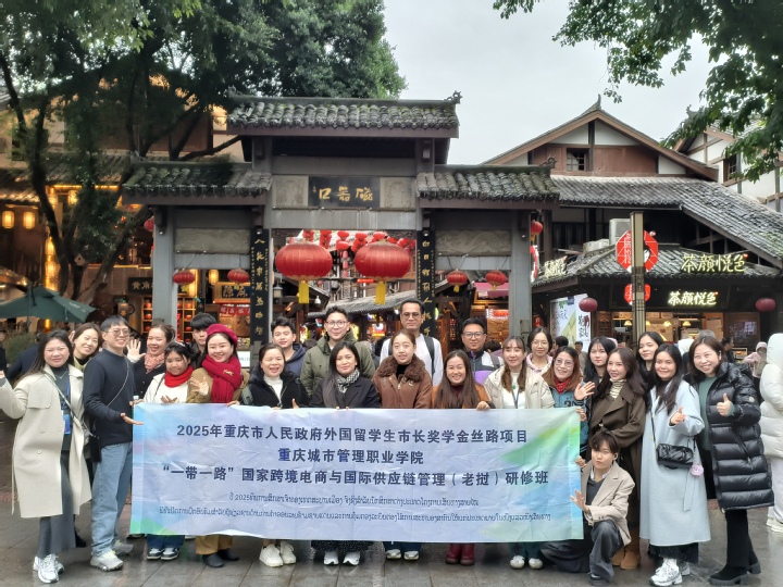 近日,2025年重庆市外国留学生市长奖学金丝路项目——“‘渝见中国·一带一路’国家跨境电商与国际供应链管理人才研修班”顺利结业。在为期一个月的研修中,26名老挝学员不仅系统学习了跨境电商与国际供应链管理的专业知识,更通过一系列沉浸式文化体验活动,深入感受中华优秀传统文化的深厚底蕴与时代活力,留下了深刻而美好的“中国记忆”。
