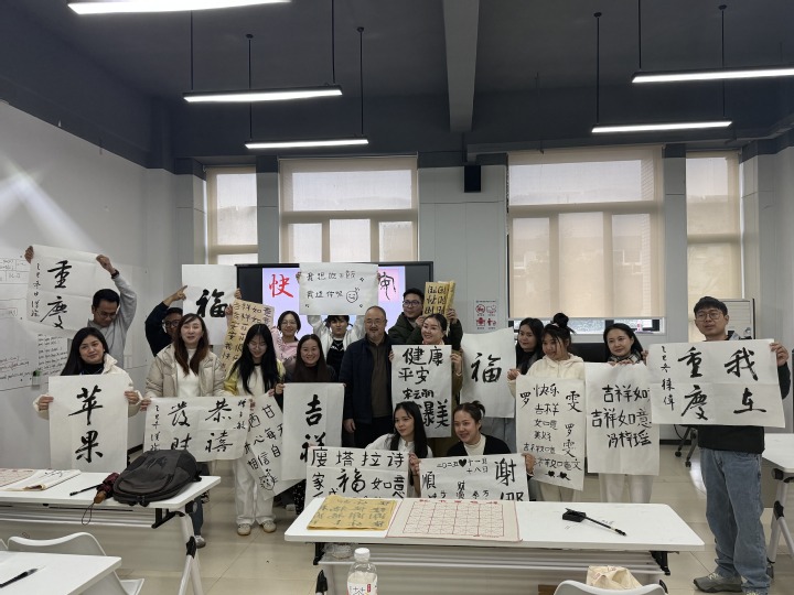本次文化体验活动设计精心、内容多元,涵盖传统手工艺、生活美学、体育养生与民俗风情等多个维度。在剪纸工作坊中,学员在我校教师赵虹玉的指导下,亲手操剪,于方寸红纸间裁出栩栩如生的窗花与生肖图案,切身领略中国民间艺术中所蕴含的匠心与智慧。
