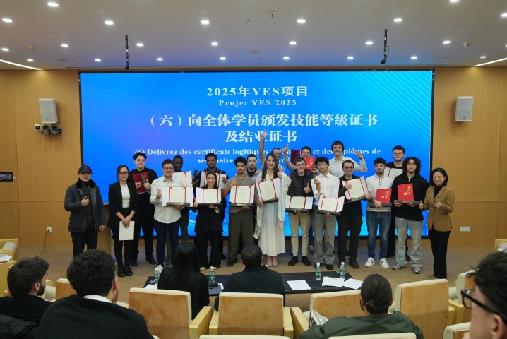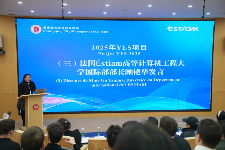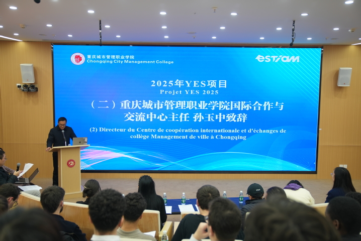 12月10日,由重庆城市管理职业学院主办,一带一路职业教育发展人文交流研究院、成渝地区双城经济圈-澜湄区域职教联盟、重庆市国际物流产教联合体共同承办的“渝见中国•2025 YES项目——‘中文+智慧物流职业技能’短期研修项目”结业典礼在学校马克思主义学院学术报告厅举行。来自法国Éstiam高等计算机工程大学的24名师生以及学校国际合作与交流中心、商学院、安全管理处相关负责人与项目教师共同出席。典礼由商学院党总支副书记牟艳红主持。