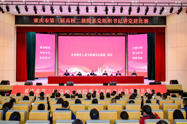 12月5日,重庆市第三届高校二级院系党组织书记讲党建比赛在我校顺利举办。来自全市各高校党委组织部部长、二级院系党组织书记等300余人齐聚一堂。开幕式由市教委组干处处长刘鑫主持,市委教育工委专职副书记屈锐出席会议并讲话。