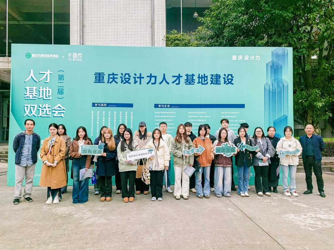 11月5日,学院党总支部书记郑兵带队,组织2023级室内设计专业30名学生,在任课教师与辅导员的共同参与下,赴渝北区金山意库ADC广场,参加了由重庆市装饰协会主办的“重庆设计力”人才基地专项双选会。本次活动旨在搭建校企对接桥梁,拓宽学生实习实践与就业渠道,助力专业人才培养与行业需求紧密衔接。