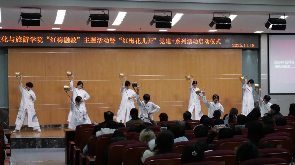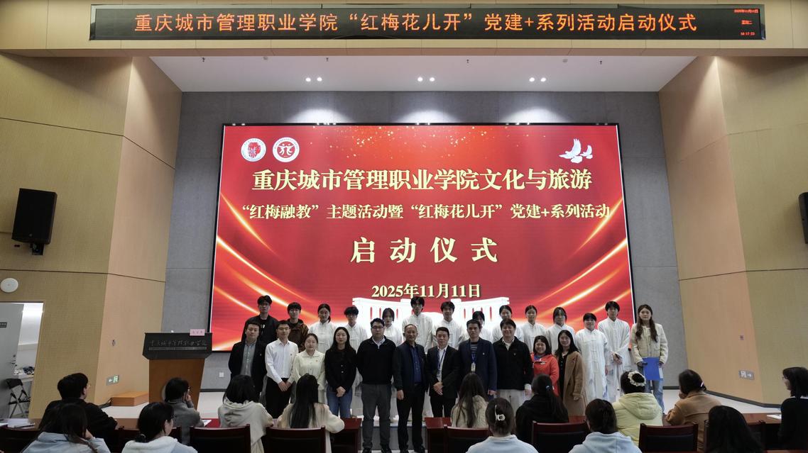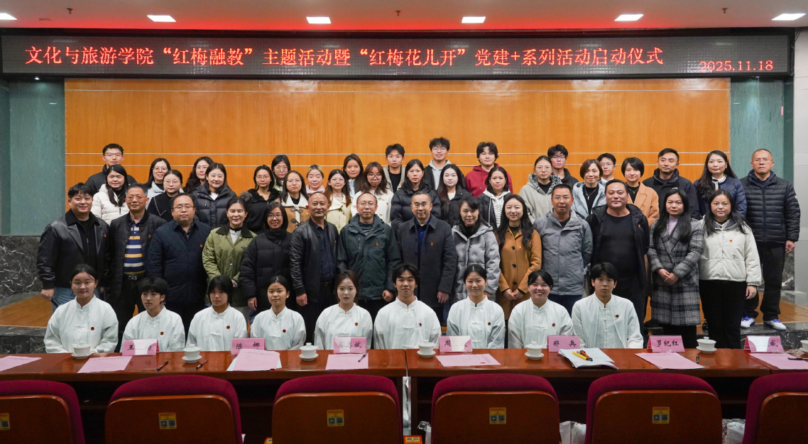 为深入贯彻落实立德树人的根本任务,推动党建工作与教育教学的深度融合,文化与旅游学院“红梅融教”主题活动暨“红梅花儿开”党建 + 系列活动启动仪式,分别于 2025 年 11 月 11 日在荣昌校区、11 月 18 日在大学城校区隆重举办。这两场活动以“红梅精神”为引领,融合了非遗传承、实践育人、榜样引领等多种元素,体现了学院在党建统领下育人工作的创新性探索。