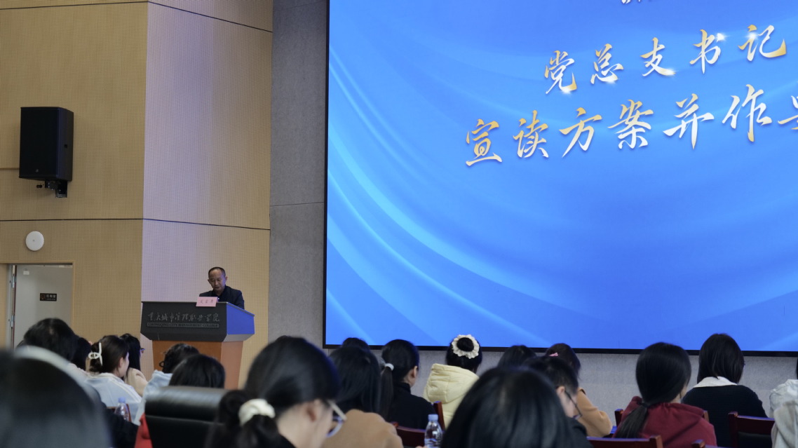 郑兵同志宣读了《“红梅融教”主题教育暨2025年“红梅花儿开”党建+系列活动方案》,并对后续工作提出明确要求。学校荣昌校区管委会副主任吴齐在讲话中充分肯定了学院在党建融合育人方面的积极探索,并引用自己的求学经历勉励文旅学院师生“红梅精神”为指引,勇于担当、勤于实践。