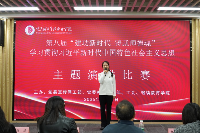 来自全校12个党总支(直属党支部)的教师选手同台比拼,大家紧扣“建功新时代·铸就师德魂”主题,或以亲身经历讲述扎根一线、立德树人的故事,或聚焦身边榜样,再现甘为人梯、奖掖后学的动人瞬间:通识教育学院黄雪分享《舞步的韵律,生命的力量》,把舞蹈课堂变成“心灵加油站”;马克思主义学院马璨以《做心怀“国之大者”的育人园丁》为题,致敬张桂梅、杨振宁,表达“为党育人、为国育才”的执着;智慧康养学院唐兰芳回顾从医师到教师的转身,诠释“不同职业、同样守护生命”的赤诚;大数据与信息产业学院薛云飞用七年陪伴一名“慢成长”学生的经历,印证“花期各不同,静待繁花绽”的师者情怀。声情并茂的演讲赢得阵阵掌声。评委代表杨瑞在点评中表示:“一段段质朴的教育叙事,集中展现了新时代城职教师踔厉奋发的精神风貌,也映照着学校师德师风建设的丰硕成果。”