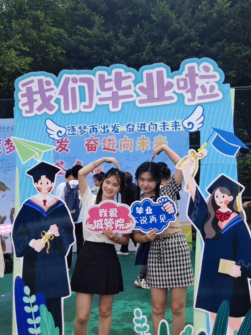 本次活动主要分为留言墙签名和打卡框拍照,毕业典礼前后,毕业学子纷纷驻足签名墙,写下毕业感言、对母校的祝福,用文字和照片记录下这一生难忘的时刻。留念、不舍写满墙面:“毕业快乐”、“山水万程,千里相逢”、“未来可期”……学生社区党支部组织委员、学生社区辅导员刘亚菲说:“借此活动让毕业学生感受到学校大家庭的温暖,为大学生涯画上一个完美的句号,同时也为同学们送上最诚挚的祝福!”学生社区辅导员王欢说:“夏天,是告别的季节,而告别也是新的开始,愿毕业生未来的旅程星辰闪烁、繁花灿烂,在这个难忘的夏天,脚踏实地、奔向未来,前程似锦!”