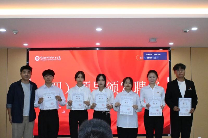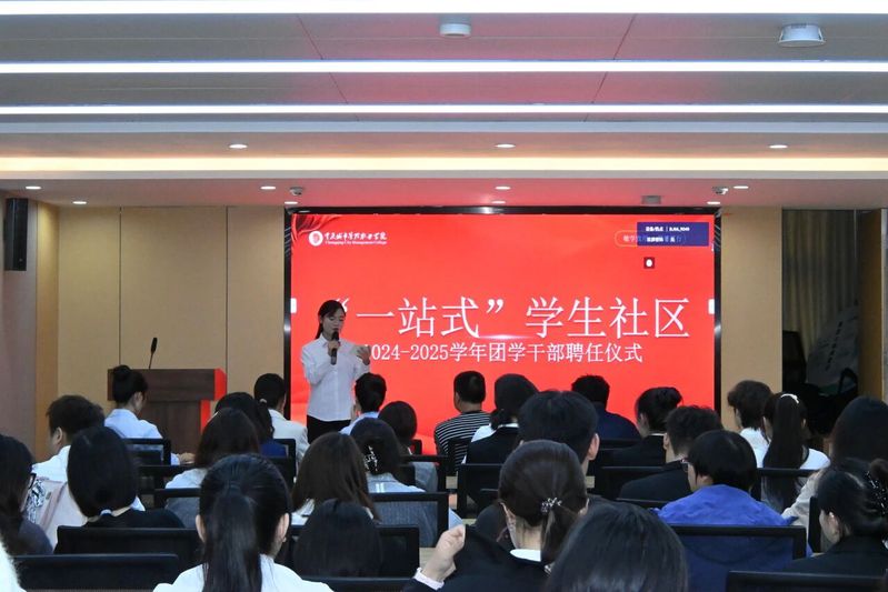 10月14日,重庆城市管理职业学院“一站式”学生社区2024-2025学年团学干部聘任仪式在致远园五舍5119顺利举行。此次仪式旨在推动团学工作交接与精神传承,凝聚团队共识、明确发展方向。学生处社区指导老师及社区团总支、自律委员会全体学生干部共同参与。