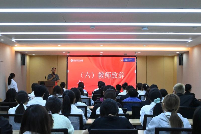在代表发言环节,社区团总支学生干部代表王佳慧分享工作经验与实践感悟,表达了对社区团学组织的深厚情感,同时勉励新一届干部“不忘初心、勇于担当,为组织续写发展新篇章”。教师代表周世兵在致辞中进一步明确要求:新一届干部需立足 “服务同学” 核心定位,主动提升综合能力,强化团队协作意识,以实际行动投身 “一站式” 学生社区建设。