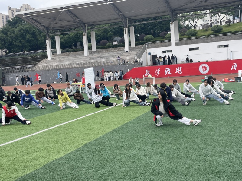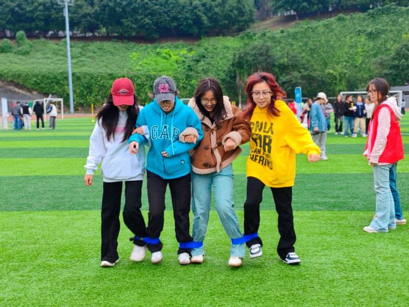 运动会在主持人热情开场后拉开帷幕。随后,参赛选手跟随领操人员完成热身,充分活动关节、规避损伤,现场欢声笑语不断,快速点燃竞技热情。本次运动会设四人五足、摸石过河、合力运球等六大项目,各项目均区分男、女生组设置不同赛道长度,兼顾公平与趣味,参赛队伍需持集章卡完成全部项目。