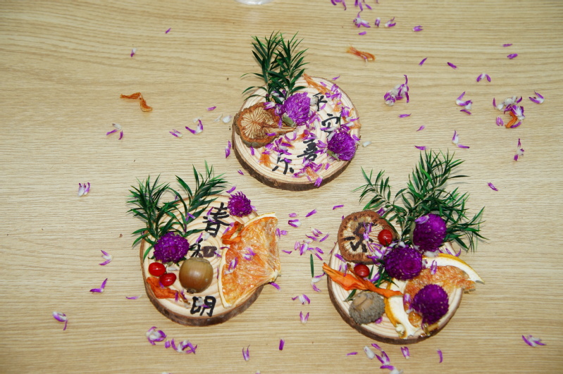 在老师演示制作步骤后,同学们纷纷动手,将西柚片、千日红、相思豆等材料巧妙搭配,制作出独具个性的中药冰箱贴。作品展示环节中,多位同学上台分享创作理念与制作心得,现场气氛热烈,掌声不断。活动最后,全体参与者合影留念,记录下这份“药香中的创意记忆”。