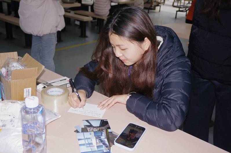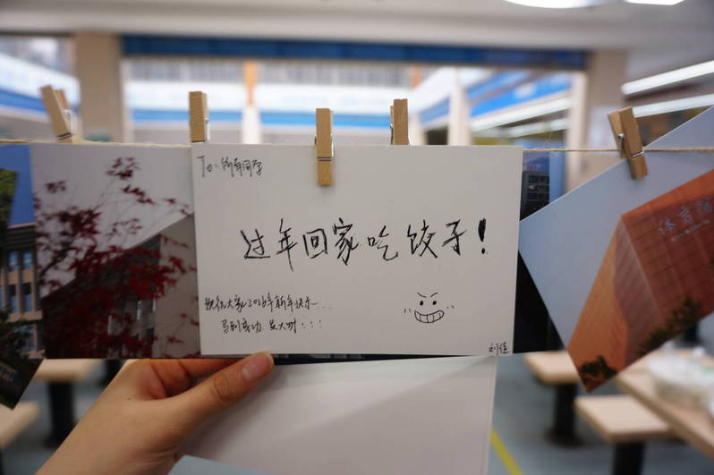 煮饺间隙,互动环节深化育人内涵。师生手持定制明信片,以笔墨传递对同学的关怀、对老师的敬意,字里行间满是温情;家乡话祝福环节温情上演,大家用四川话、重庆话及少数民族语言等多元乡音送期许,既丰富活动形式,更以“乡音” 为纽带拉近民族与师生距离,筑牢民族团结进步教育根基。