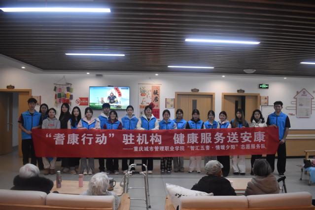 2025年12月4日,智慧康养学院“智汇五耆·情暖夕阳”志愿服务队正式启动“‘耆康行动’驻机构 健康服务送安康”五年计划,首站活动在重庆高新区久久康养曾家镇养老服务中心开展。