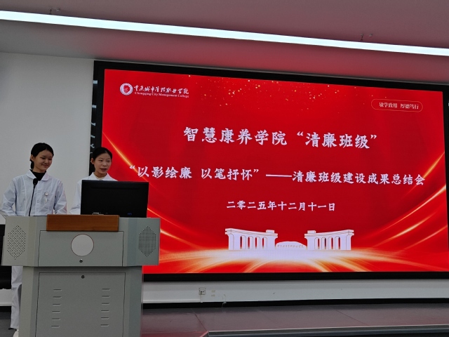 为深化校园清廉文化建设,引导青年学子系好廉洁人生“第一粒扣子”,12月11日,智慧康养学院护理A2303班在致用楼A501举办“以影绘廉 以笔抒怀”清廉班级总结大会。学院党总支书记张俊、学生事务办公室主任曾树群、辅导员王朝霞及护理专业部分师生共同参与此次活动。