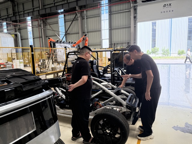 在曹雨腾的陪同下,吕坤颐一行首先参观了企业数字化展厅及PIX “无模具”智能制造工厂,现场观摩了搭载L4级自动驾驶算法的Robo-Bus(无人驾驶小巴)在模拟城市道路的实时运行演示,深入了解翰凯斯以“滑板底盘+AI生成式设计+大尺寸金属3D打印”为核心的颠覆式造车工艺。参观过程中,学院教师就底盘分布式驱动技术、多传感器融合感知系统、数字孪生调试平台等热点问题与企业工程师展开现场交流。