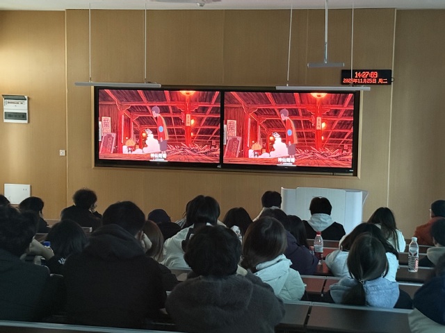活动现场氛围温馨而静谧,随着奇幻动画电影《大雨》的片头缓缓展开,雨幕氤氲中,古朴的戏鼓船在浪涛里若隐若现,主角小馒头与养父大谷子之间超越血缘的亲情羁绊,瞬间将在场观众带入那个充满未知却饱含温情的奇幻世界。影片中,小馒头在一场场突如其来的大雨与惊心动魄的冒险中,逐渐接纳了养父不完美的过往与笨拙的守护;而平凡如尘埃的大谷子,即便身处底层、历经坎坷,却始终用卑微却坚实的臂膀为孩子托举希望,即便在意外化为怪物后,灵魂深处对儿子的牵挂与守护也从未消散。这些细腻入微的情感刻画、直击人心的情节转折,让不少同学悄然红了眼眶,在光影与现实的交织中产生深深共鸣。
