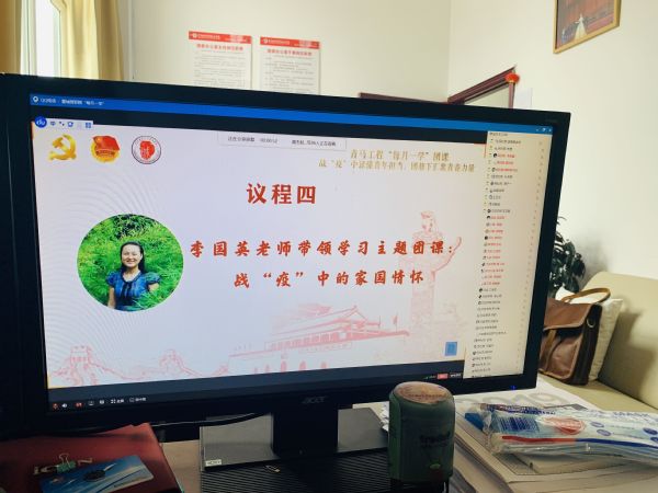团课在“我们是五月的花海,用青春拥抱时代,我们是我们是初升的太阳,用生命点燃未来......”的团歌中拉开序幕,陶军屹书记为参会同学作学习动员,她首先表达了对所有参与防疫工作老师和同学的关心,并结合自身思想工作实际与同学分享对总书记回信的认识。她引用鲁迅先生《随想录》中的句子“有一分热,发一分光,就令萤火一般,也可以在黑暗里发一点光,不必等候炬火······”激励同学们坚持听党话跟党走,心系社会民生、勇于砥砺奋进,牢记总书记嘱托,让青春在党和人民最需要的地方绽放绚丽之花,在任何时候都应保持内心珍贵的真心、正义、无畏与同情,勇于担起国家和社会的责任。