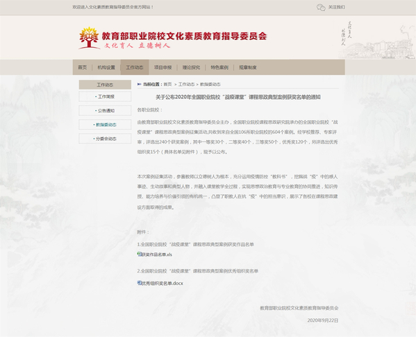 近日,由教育部职业院校文化素质教育指导委员会主办,全国职业院校课程思政研究院承办的全国职业院校“战疫课堂”课程思政典型案例征集评选结果揭晓,我院张夔老师主持的“战疫期《社区心理学》课程思政的路径探索与实践”案例荣获二等奖。