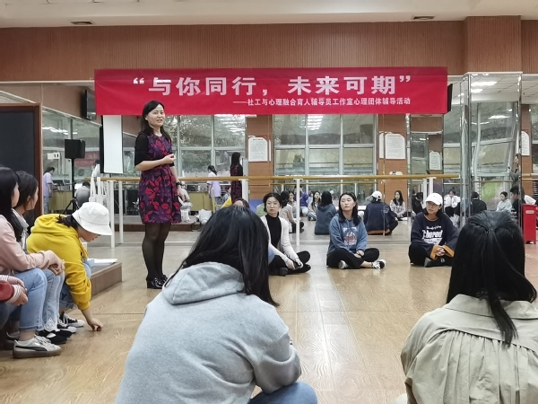 9月27日,我院组织社工与心理融合育人辅导员工作室举办“与你同行,未来可期”主题团辅活动。学院党总支书记陶军屹、相关教师及A1801民政管理班全体同学参加活动。