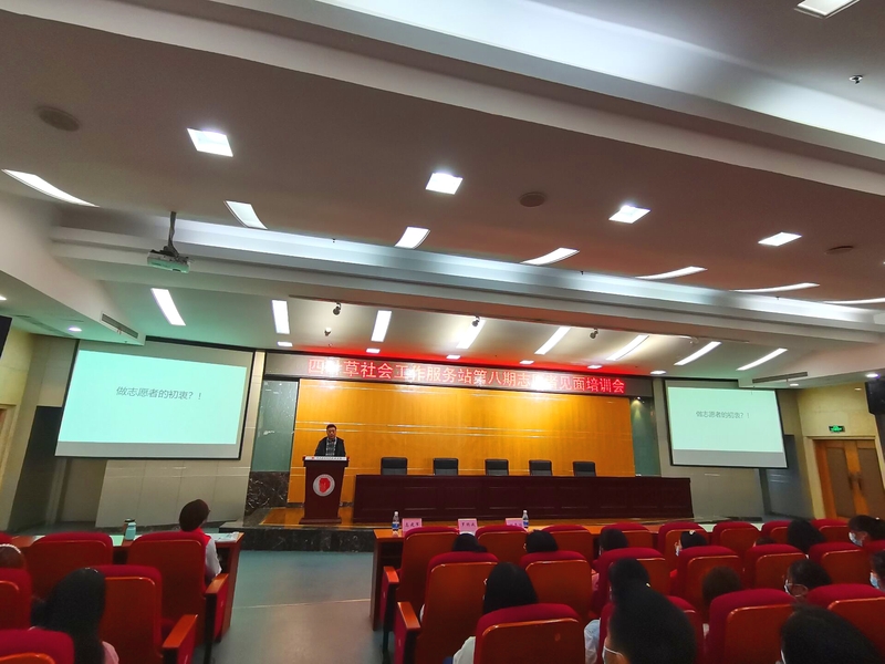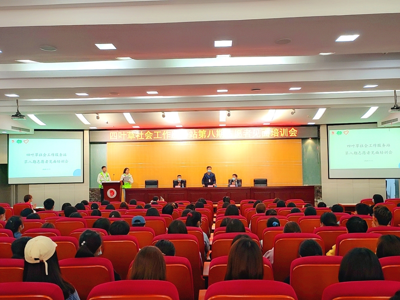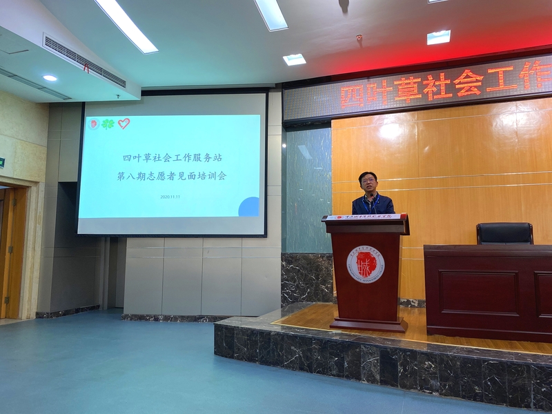11月11日,我校四叶草社会工作服务站第八期志愿者见面培训大会在学术报告厅顺利召开。民政与社会治理学院院长田奇恒、重庆山城志愿服务中心主任高建军、四叶草社工站第七期优秀志愿者罗明波、专职社工以及15名骨干志愿者和第八期300余名志愿者参加了会议,会议由民政管理1902赖华、物流管理1902龚鑫悦两位志愿者主持。
