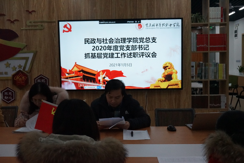 1月5日,民政与社会治理党总支“2020年度党支部书记抓基层党建工作述职评议会”暨市级标杆院系推进会在致用楼B202社工专业党支部党员活动室召开。学院党总支书记陶军屹、党总支副书记、院长田奇恒、总支及支部委员会全体成员和教师代表出席了会议,会议由党总支专职组织员李国英主持。