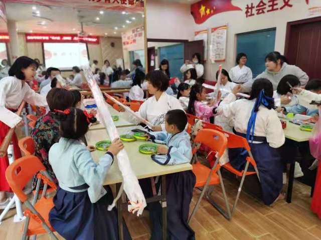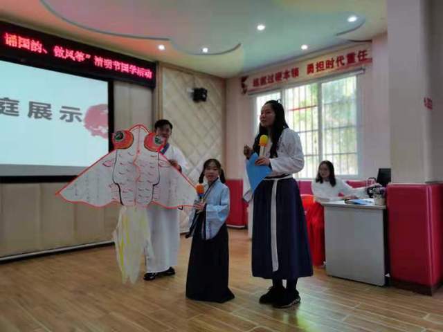 随后进入大家期待的手绘风筝环节,每个家庭奇思妙想,用画笔描绘春的色彩。专家评审团根据每个家庭风筝展示、诗词诵读及讲解、感情、体态表现,评出了一、二、三等奖。最后,全体齐声诵读唐朝诗人杜牧的《清明》。