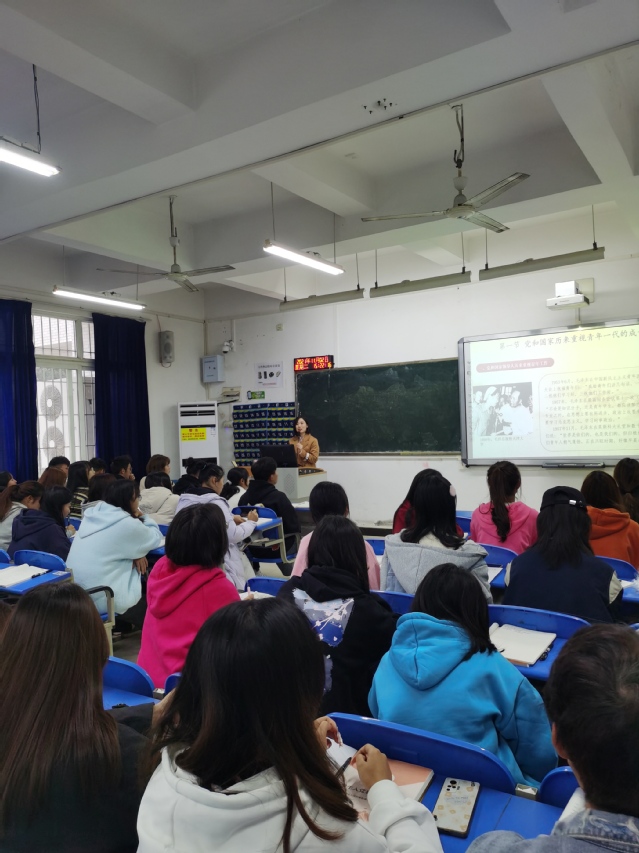 杨洁同志主要围绕当代大学生的使命、树立坚定的信仰、铭记党的光辉历史三个部分进行讲授。第一部分,杨洁同志告诫同学们,要找准人生方向,明确自己的历史使命,并引用习近平主席在纪念五四运动100周年大会上的讲话内容,给在座学生提出“树立远大理想、热爱伟大祖国、担当时代责任、勇于砥砺奋斗、练就过硬本领、锤炼品德修为”的六点期望,并从五个方面告诉学生应如何履行自己的使命。第二部分,杨洁同志指出党的事业与青年成长的联系,强调当代大学生应该积极加入中国共产党,并从自己在英国学习时的真实见闻中以小见大,鼓励学生在学思践悟中坚定理想信念,在奋发有为中践行初心使命,在人民的伟大奋斗中实现自己的人生理想。第三部分,杨洁同志带领大家回顾了党的光辉历程和初心使命,希望同学们能深刻认识中国共产党筚路蓝缕的艰辛,珍惜今天来之不易的安定生活,同时号召同学们为中国梦续写新的篇章,为中华人民共和国续写新的辉煌。